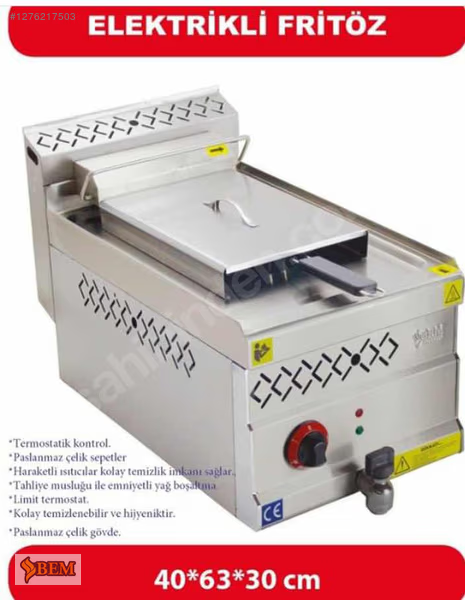 40’lık elektrikli fritöz, kompakt tasarımı ve hızlı ısınma özellikleriyle küçük ve orta ölçekli mutfaklarda pratik ve verimli kullanım sağlar. Dayanıklı malzemesi ve kolay temizlenebilir yüzeyi uzun ömürlüdür.