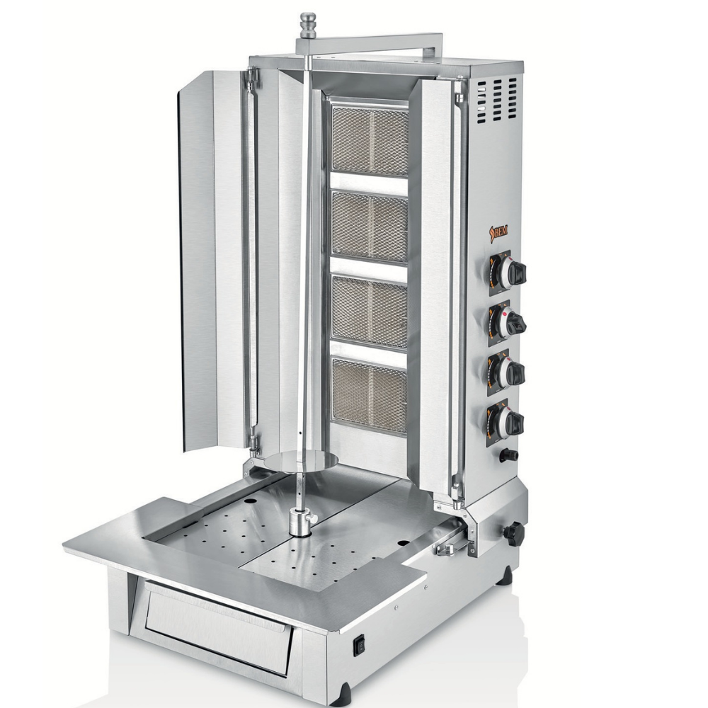 Profesyonel mutfaklar için özel olarak tasarlanan döner ocaklarımız, doğalgaz ve LPG ile çalışabilen modelleri sayesinde farklı ihtiyaç ve kullanım alanlarına mükemmel uyum sağlar. Motorlu modellerde bulunan otomatik dönen motor sistemi, pişirme sürecini zahmetsiz hale getirir ve kullanım kolaylığı sunar. Ayarlanabilir döner şişi sayesinde etlerinizi ideal kıvamda, eşit pişmiş ve lezzetli bir şekilde hazırlayabilirsiniz. Paslanmaz çelikten üretilen gövde, cihazınıza sağlamlık katarken, aynı zamanda hijyenik ve temizliği kolaylaştıran bir yüzey sunar. Ürünlerimiz, dayanıklı radyan pişiriciler ile yüksek sıcaklıklara karşı dirençlidir ve sürekli kullanıma uygundur. Hijyenik yapısı sayesinde gıda güvenliğini sağlar, uzun ömürlü ve güvenli kullanım sunar. Ayrıca, Avrupa standartlarına uygun olduğunu belgeleyen CE belgesine sahip olan döner ocaklarımız, işletmenizin mutfağına kalite, güven ve profesyonellik kazandıracaktır. Hem küçük hem de büyük işletmeler için ideal çözümler sunan döner ocaklarımız ile yemeklerinize lezzet katın ve misafirlerinize unutulmaz deneyimler yaşatın.