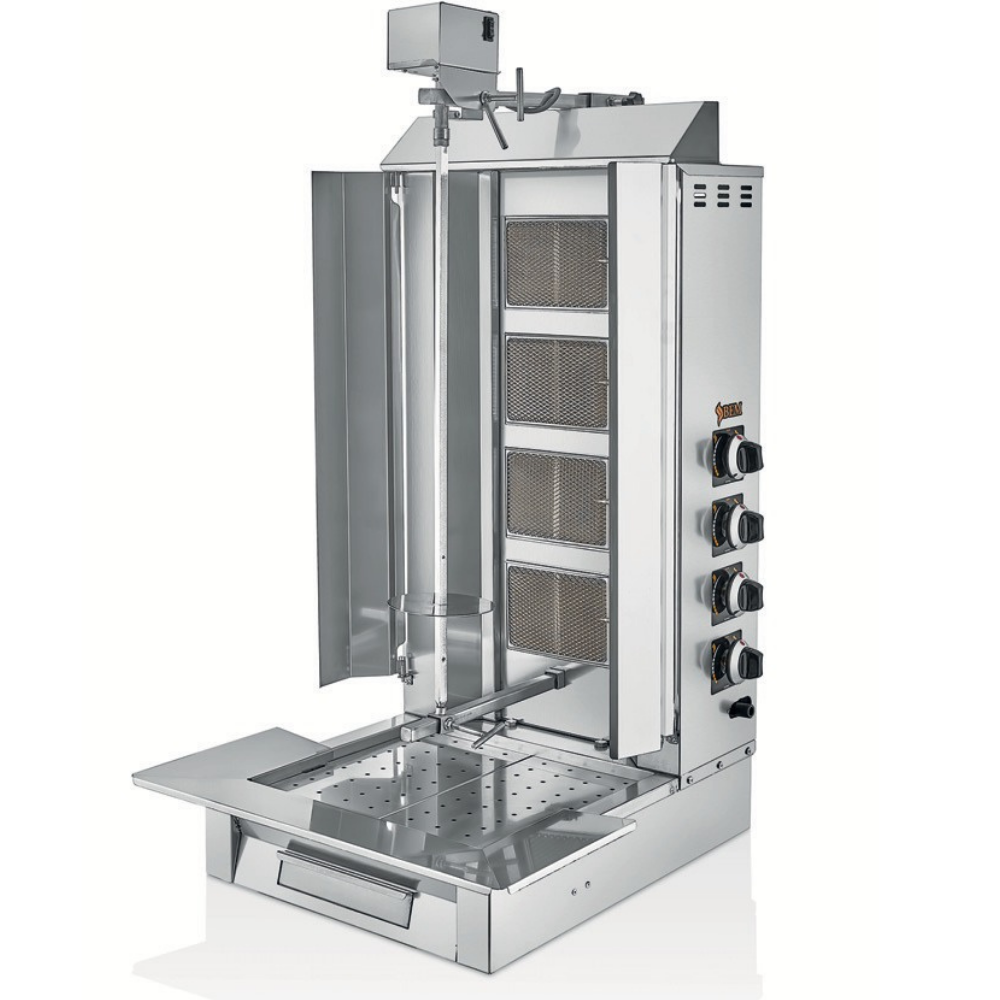 Profesyonel mutfaklar için özel olarak tasarlanan döner ocaklarımız, doğalgaz ve LPG ile çalışabilen modelleri sayesinde farklı ihtiyaç ve kullanım alanlarına mükemmel uyum sağlar. Motorlu modellerde bulunan otomatik dönen motor sistemi, pişirme sürecini zahmetsiz hale getirir ve kullanım kolaylığı sunar. Ayarlanabilir döner şişi sayesinde etlerinizi ideal kıvamda, eşit pişmiş ve lezzetli bir şekilde hazırlayabilirsiniz. Paslanmaz çelikten üretilen gövde, cihazınıza sağlamlık katarken, aynı zamanda hijyenik ve temizliği kolaylaştıran bir yüzey sunar. Ürünlerimiz, dayanıklı radyan pişiriciler ile yüksek sıcaklıklara karşı dirençlidir ve sürekli kullanıma uygundur. Hijyenik yapısı sayesinde gıda güvenliğini sağlar, uzun ömürlü ve güvenli kullanım sunar. Ayrıca, Avrupa standartlarına uygun olduğunu belgeleyen CE belgesine sahip olan döner ocaklarımız, işletmenizin mutfağına kalite, güven ve profesyonellik kazandıracaktır. Hem küçük hem de büyük işletmeler için ideal çözümler sunan döner ocaklarımız ile yemeklerinize lezzet katın ve misafirlerinize unutulmaz deneyimler yaşatın.